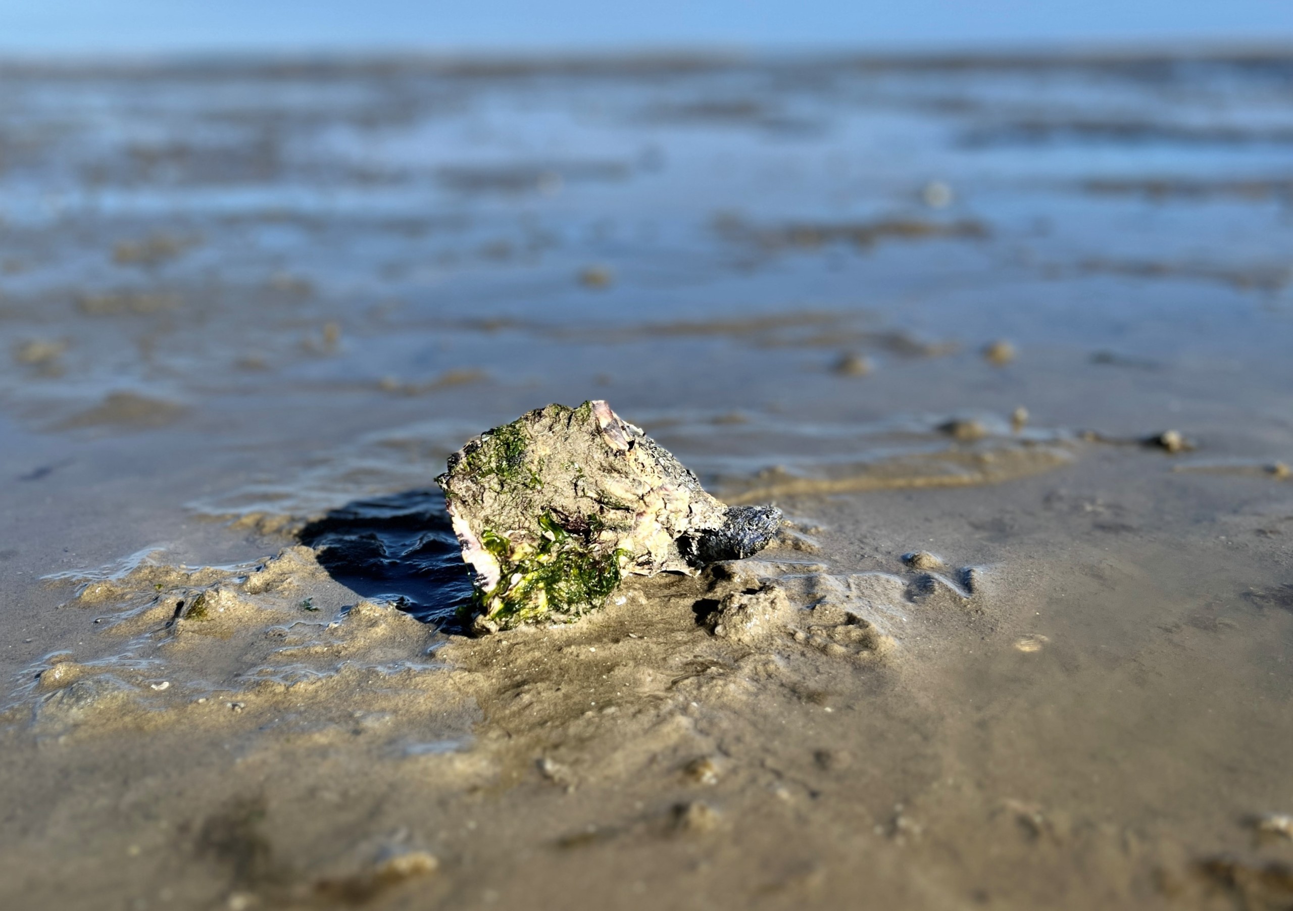 Deze Tuimelaar, gevonden in het zand naast het Amsteldiep (ten oosten van Den Helder), vormt een eenheid met een sokkel uit Jutland (DK). Ze verbinden de geografische uitersten van de Waddenzee en vertellen zo het verhaal van slik, stroming en sediment.