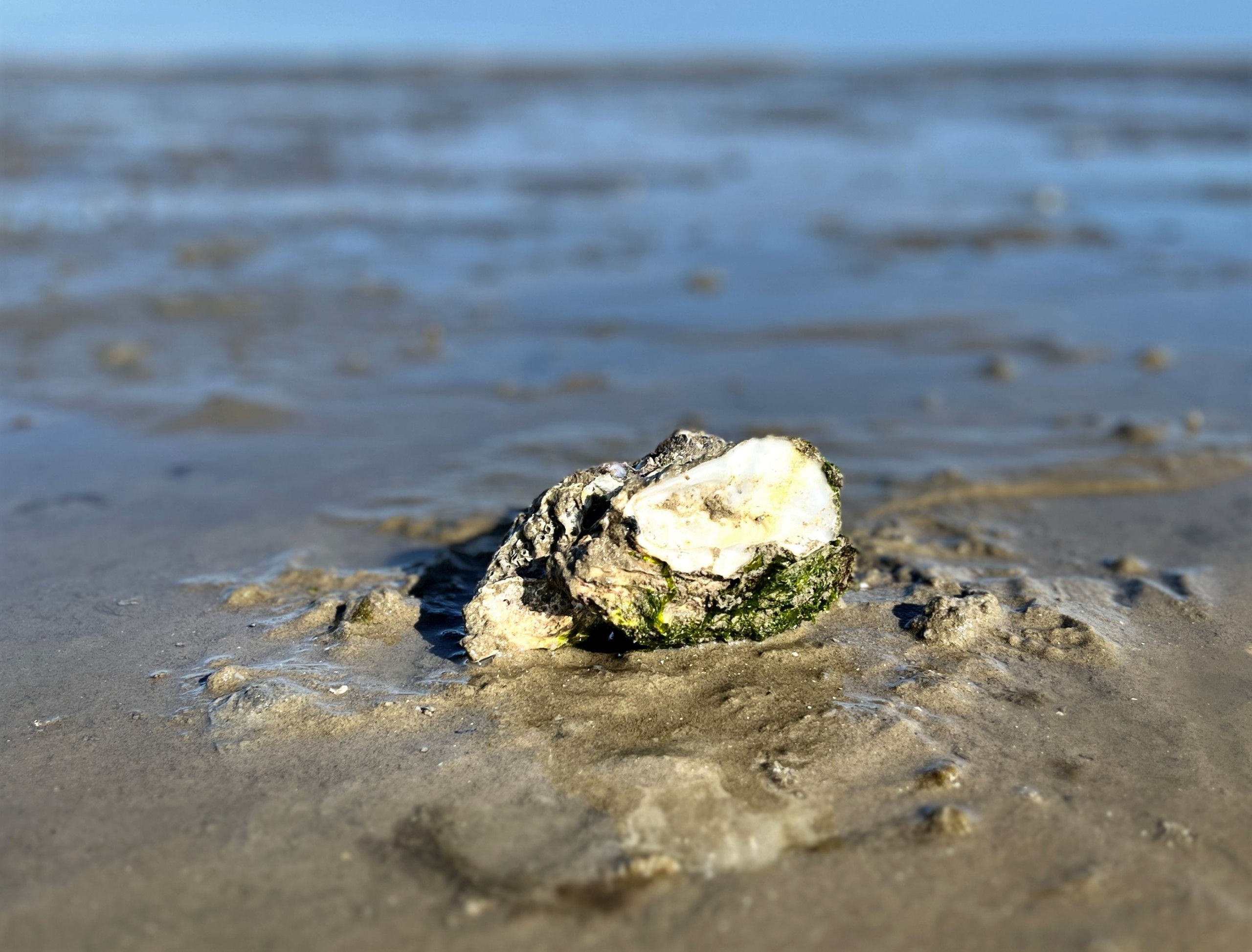 Deze Amelander Wadwees is al lang geleden verlaten door de oestertjes die ooit in hem huisden. Hij heeft geen enkel dekseltje meer, passend op een andere klephelft. Maar juist in zijn naaktheid schuilt zijn kracht: what you see is what you get.