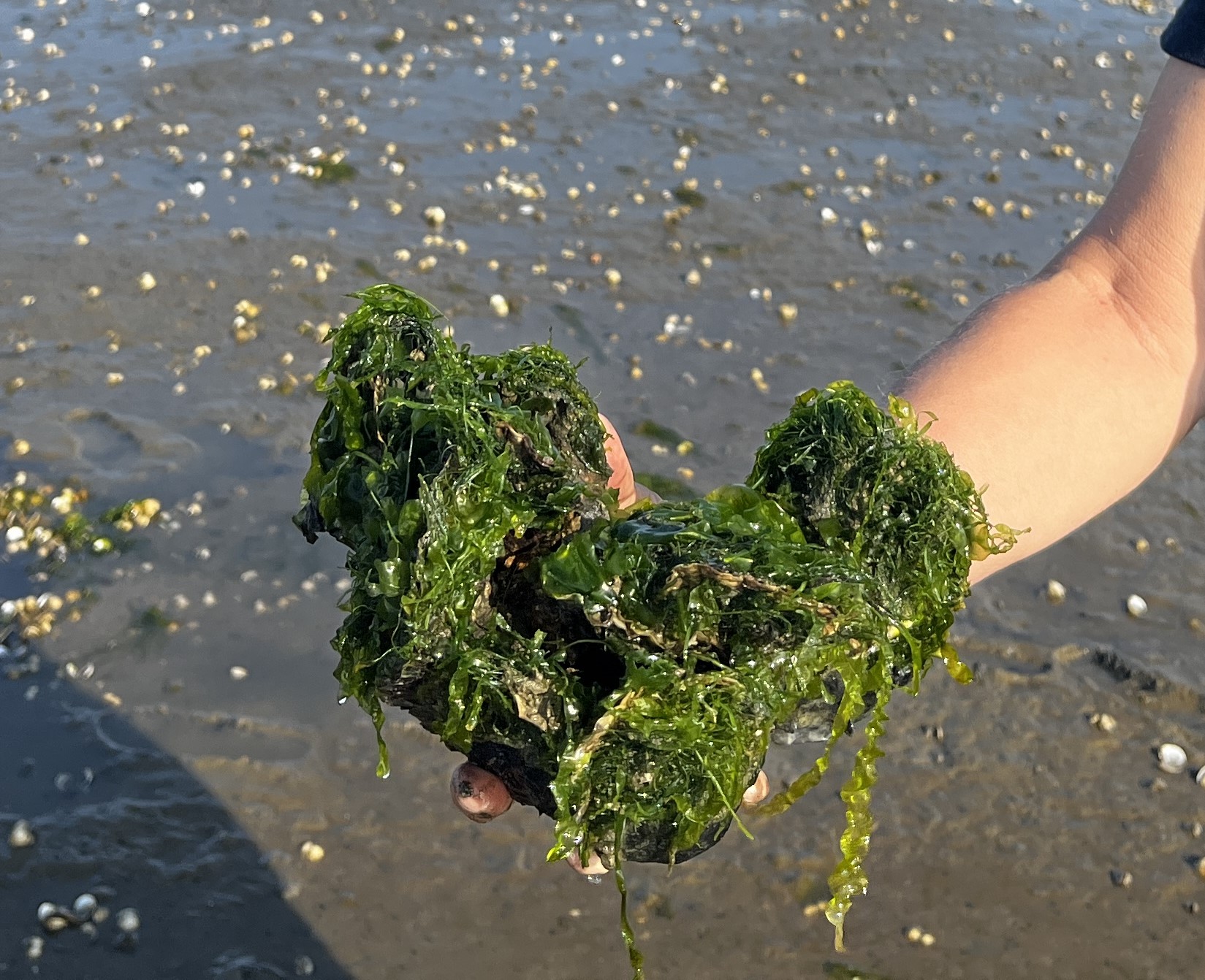 Deze Zeester straalt naar alle kanten. Op zijn vindplaats naast het Amsteldiep, een geul tussen Noord Holland en Texel, lag ie diep in het slib.Zijn voetstuk is een door de heen en weer gaande IJsselmeergolven afgesleten (bak)steen.